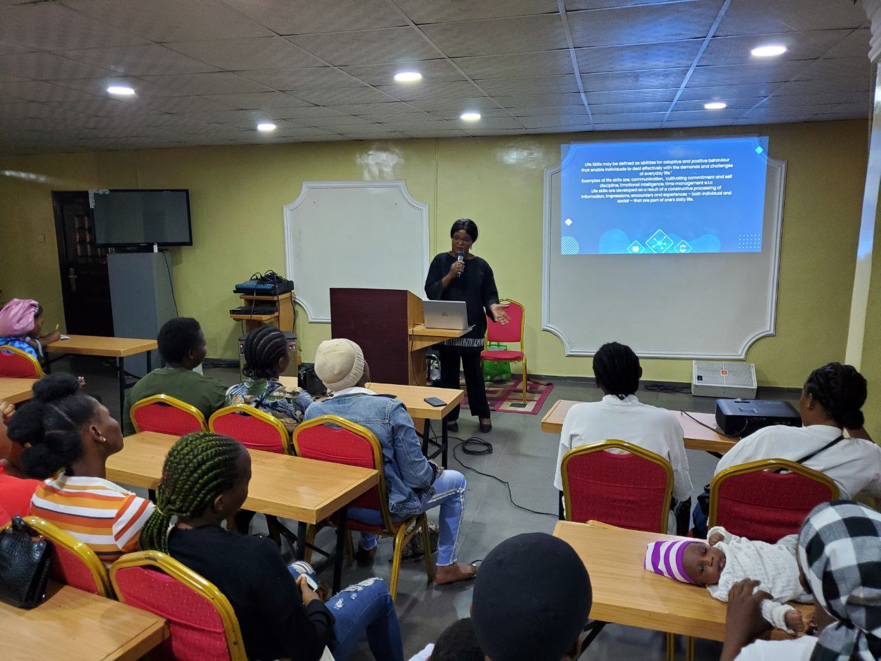 During the training on communication, the participants learned about the transformative power of their voices. They were encouraged to speak up and to exchange information, knowledge, and ideas, leading to informed decision-making and problem-solving. They also participated in a practical session, trying out their communication and active listening skills by first arguing for their own opinion regarding a statement and then swapping opinions with the other participants. To conclude the session, the trainer explained how commitment and self-discipline translate into the willingness to invest time, effort and resources to reach a goal or maintain an enduring relationship. It was stressed to the beneficiaries that doing so was crucial for personal relationships, professional endeavors and for achieving long-term success.