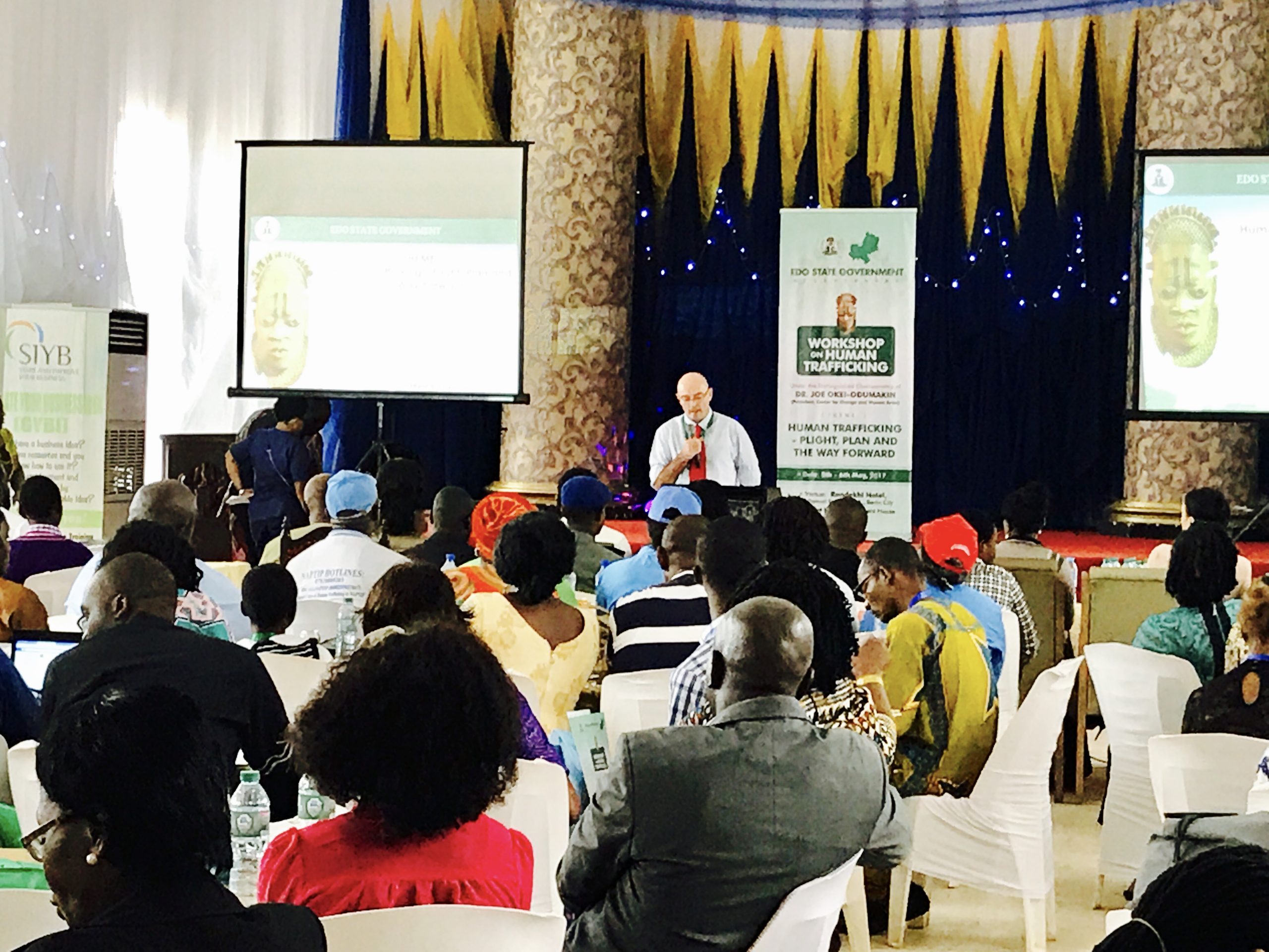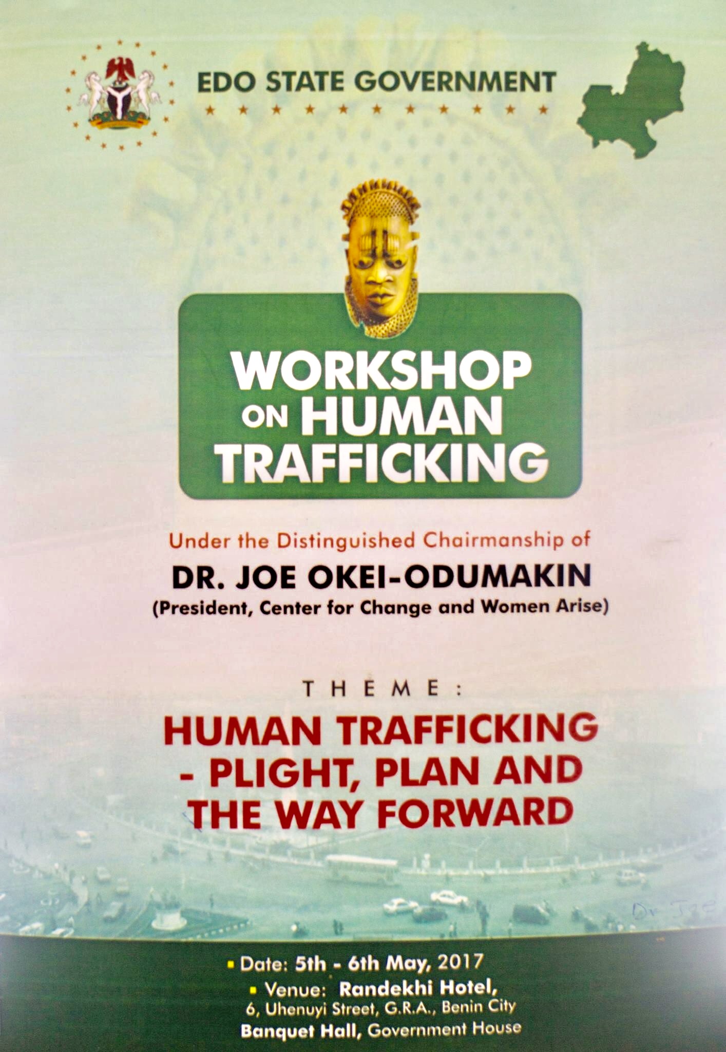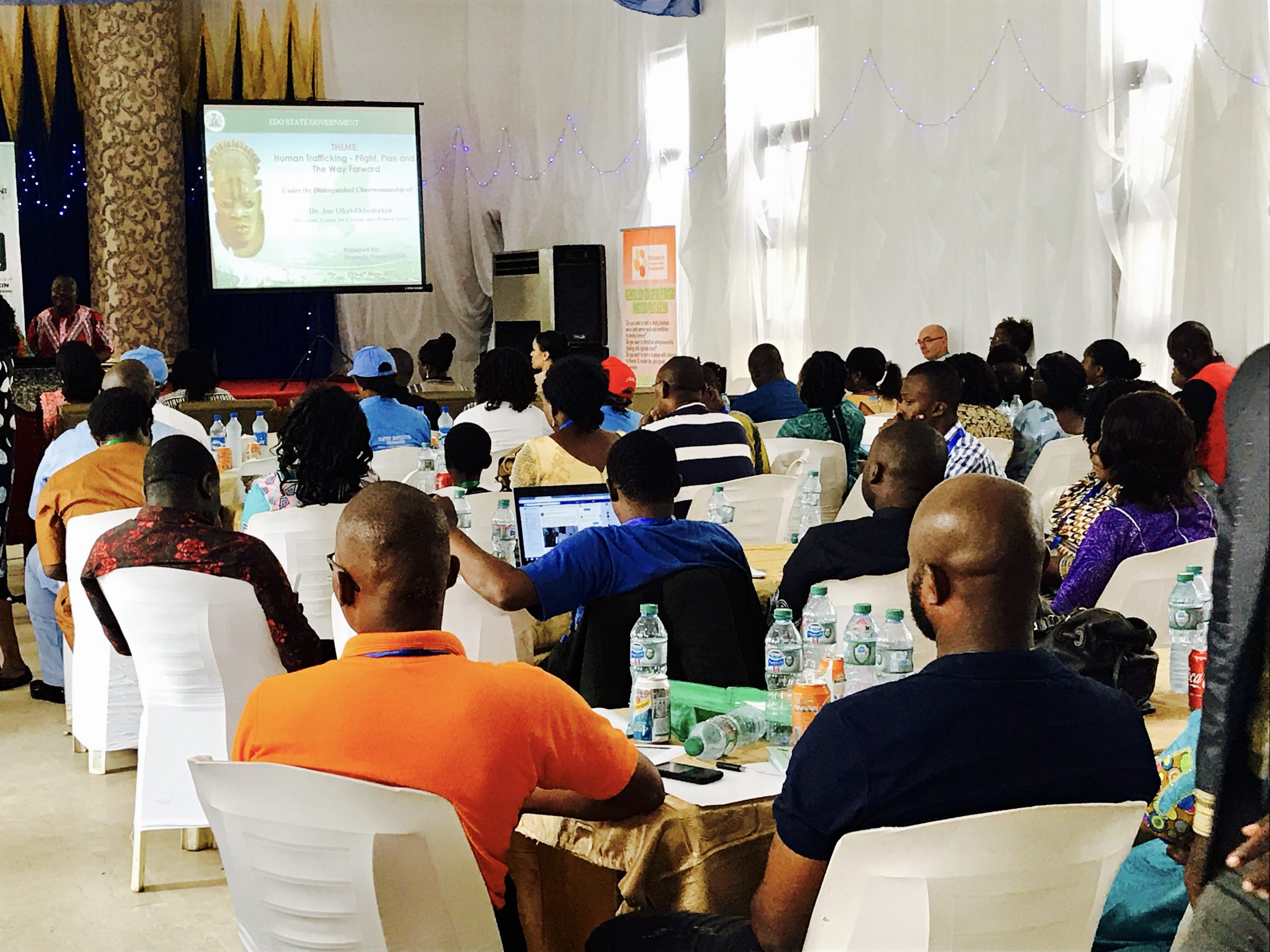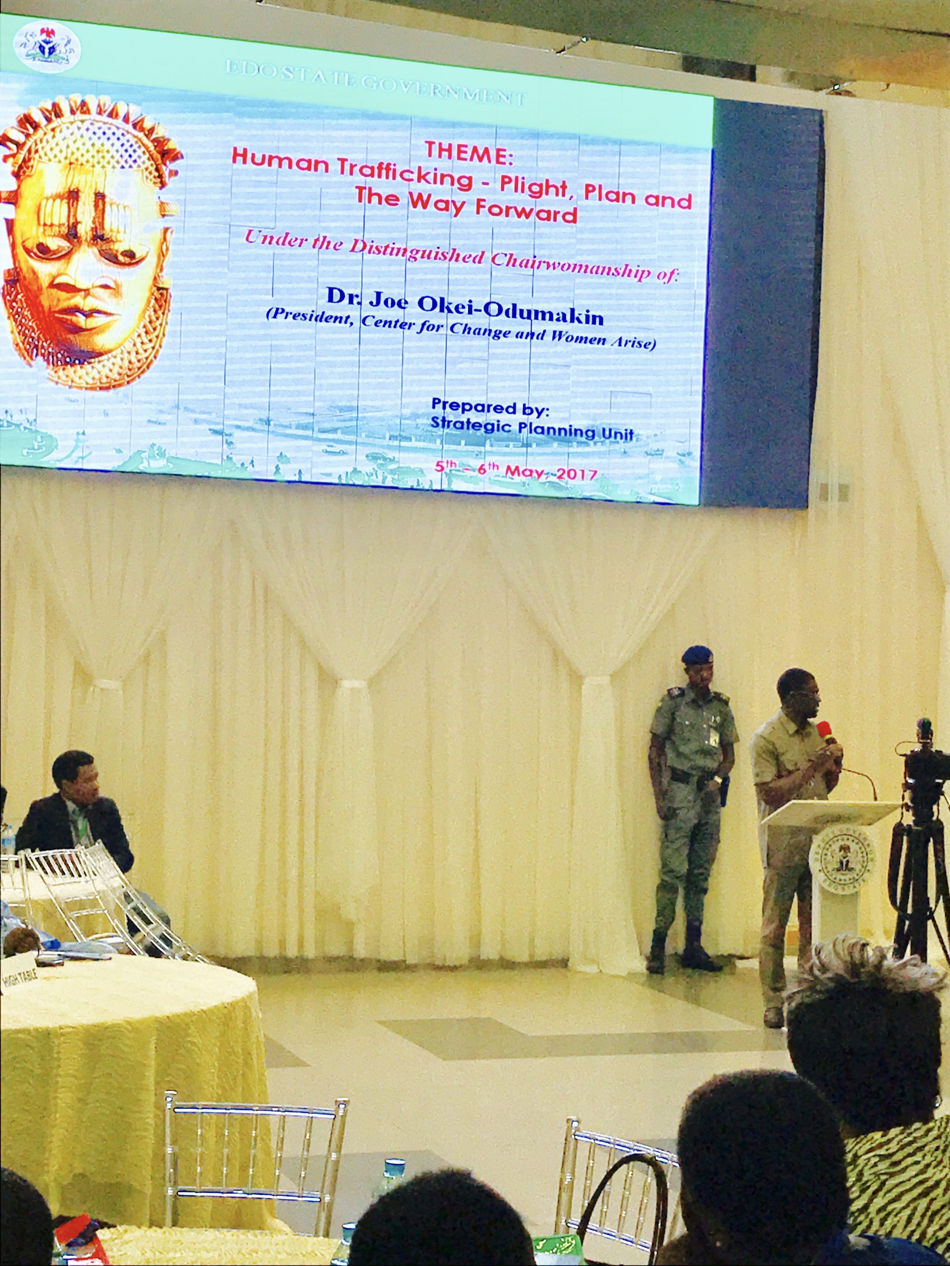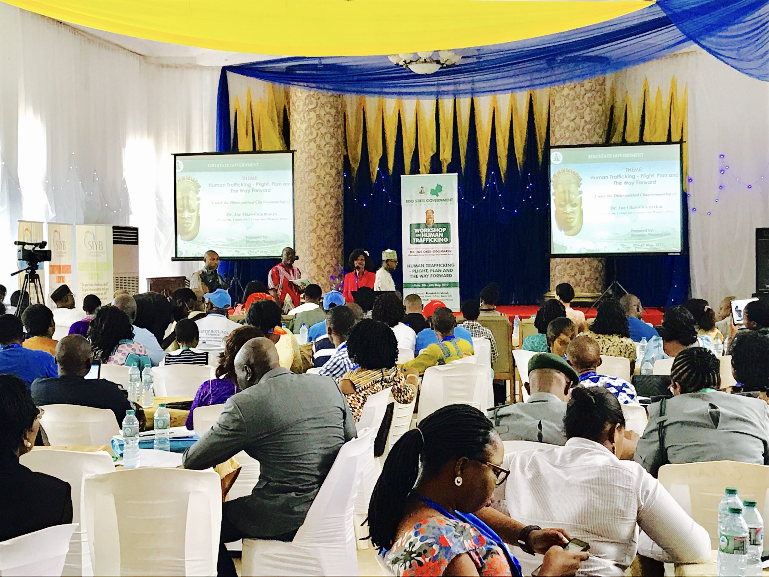 EDO STATE, NIGERIA- On May 5th and 6th, 2017, we were honored to serve as consultants to the Edo State Government of Nigeria, organizing a 2-day workshop on human trafficking alongside the brilliant minds of its Strategic Planning Unit. With over 90% of all Nigerian women trafficked into Europe hailing from Edo, it was encouraging to see our state Governor, His Excellency, Godwin Obaseki, and First Lady, Her Excellency, Betsy Obaseki, reinforcing their commitment to eradicating the issue from Edo State. The workshop brought over a hundred stakeholders to the table, including NAPTIP Nigeria, UNODC, Nigeria Police, Nigeria Customs and Immigration Services, dozens of CSOs (including IOM, ILO, TY Danjuma Foundation, FIDA, NAME, CONGOS, WOTCLEF, etc.), traditional rulers and community leaders, Federal and State Ministries, destination embassies, religious institutions, the British High Commission in Nigeria, Laura Boldrini of the Italian Parliament, Nigeria’s Special Advisor on Diaspora, Abike Dabiri-Erewa, world renowned women’s activist, Dr. Joe Okei-Odumakin (Chairwoman), and so many others to collectively strategize and make recommendations to the government.